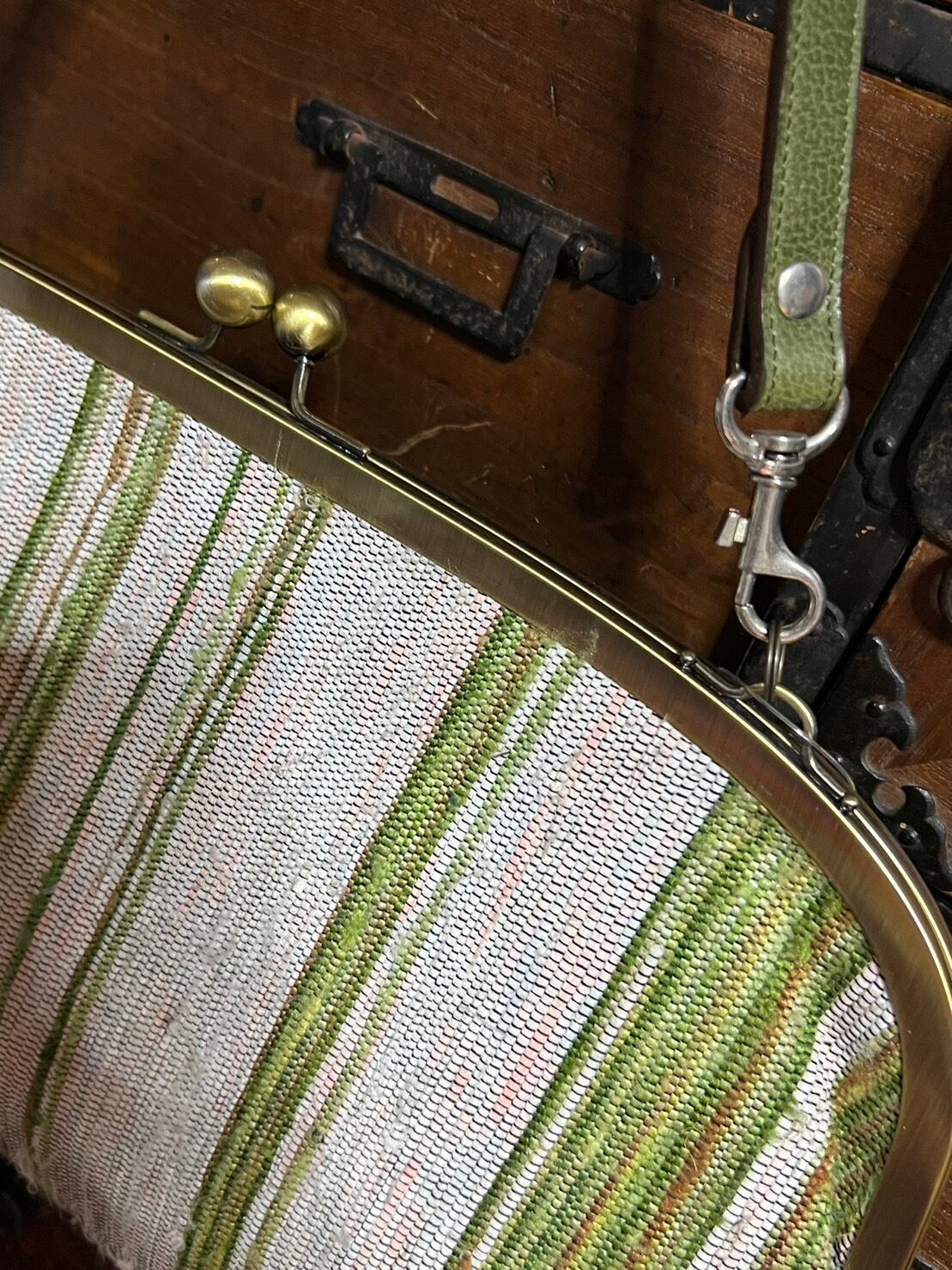 緑色の裂織り大型がま口バッグ(A-8)